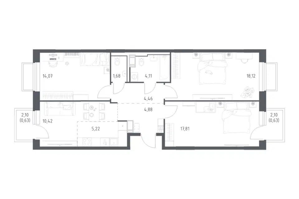 3-комн. кв., от 71.07 м², 5/17 этаж