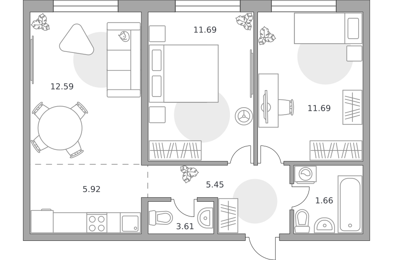 3-комн. кв., 58.1 м², 35/42 этаж