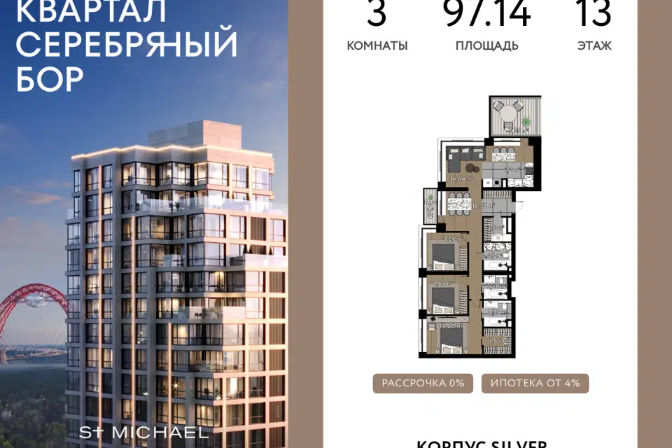 3-комн. кв., 97.14 м², 13/20 этаж