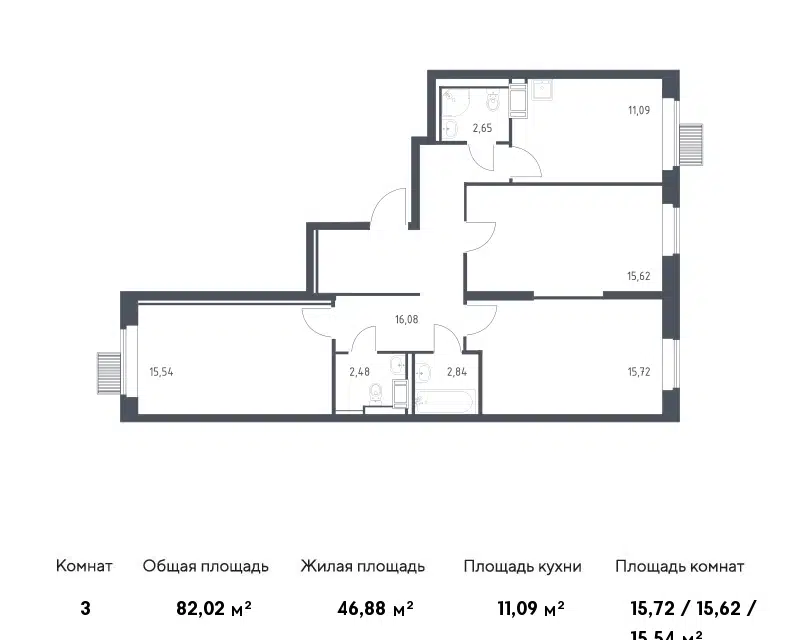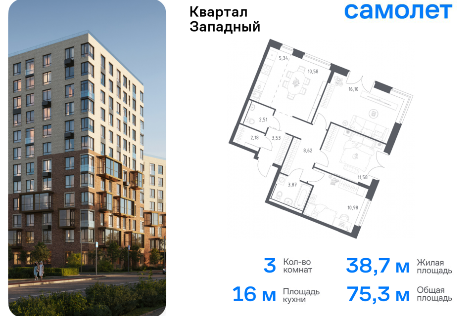 3-комн. кв., от 76.38 м², 9-11 этажи