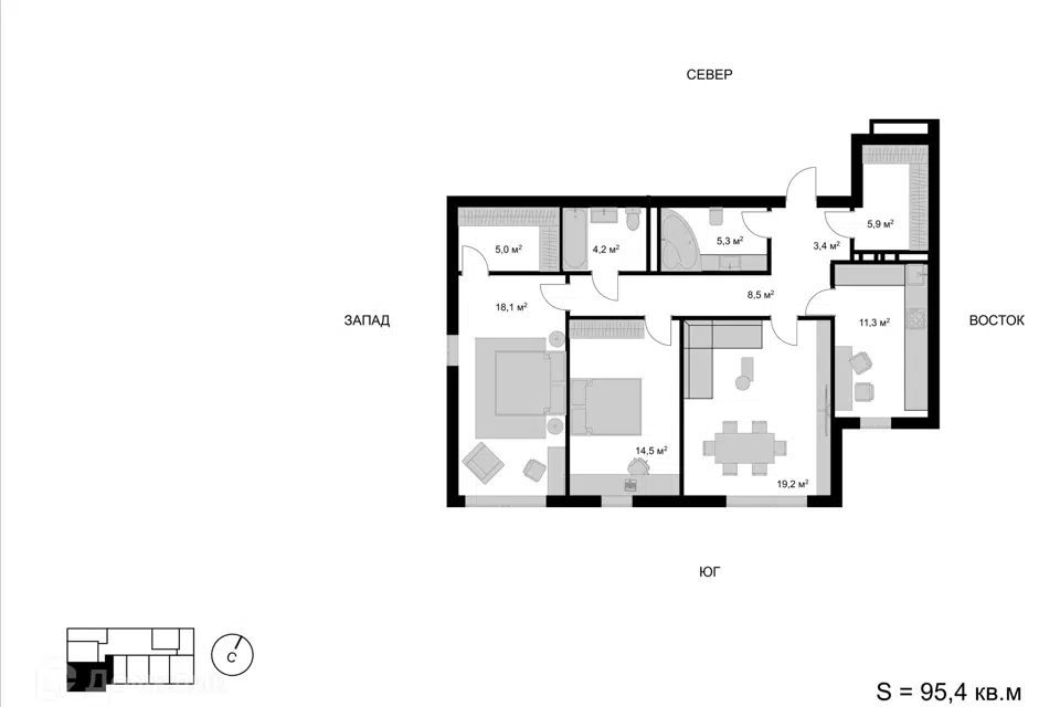 3-комн. кв., 95.4 м², 3/18 этаж