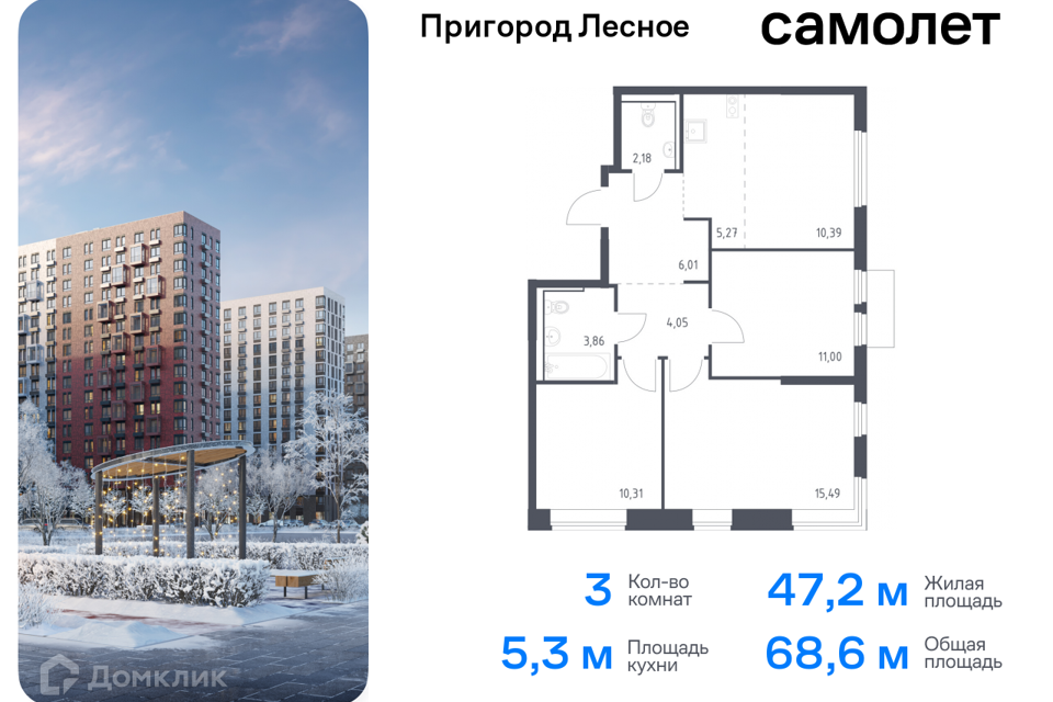 3-комн. кв., 68.56 м², 5/17 этаж