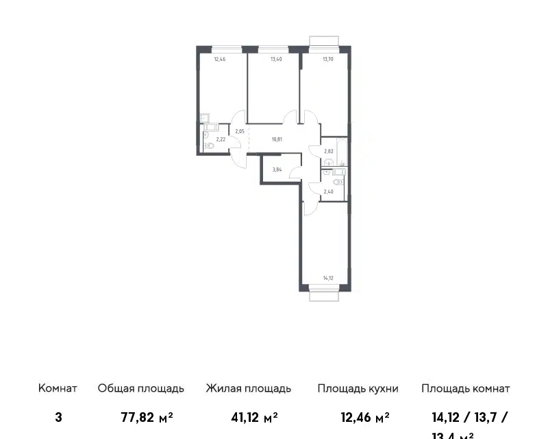 3-комн. кв., 77.82 м², 10/17 этаж