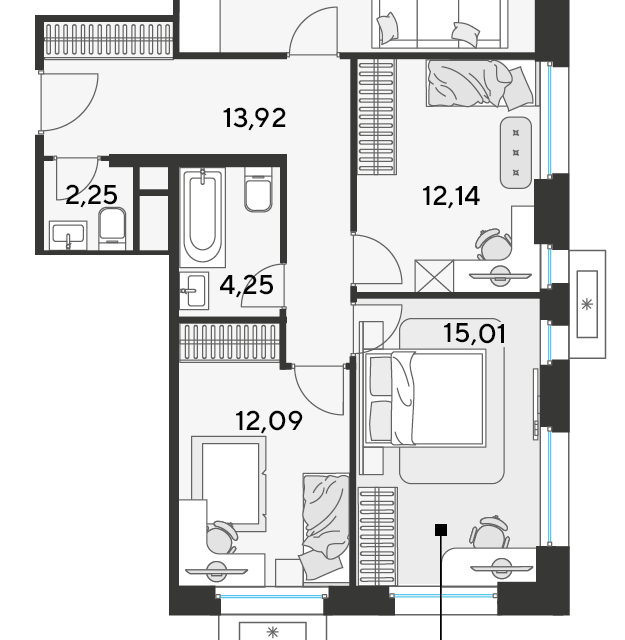 3-комн. кв., 87.54 м², 3/25 этаж