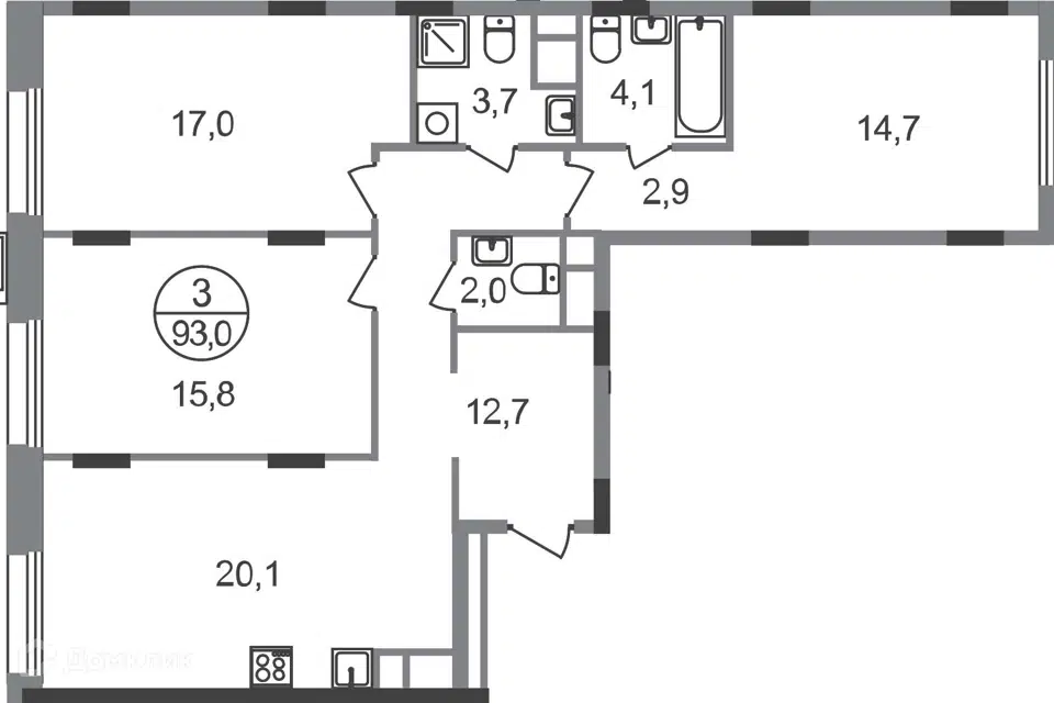 3-комн. кв., 93 м², 7/9 этаж