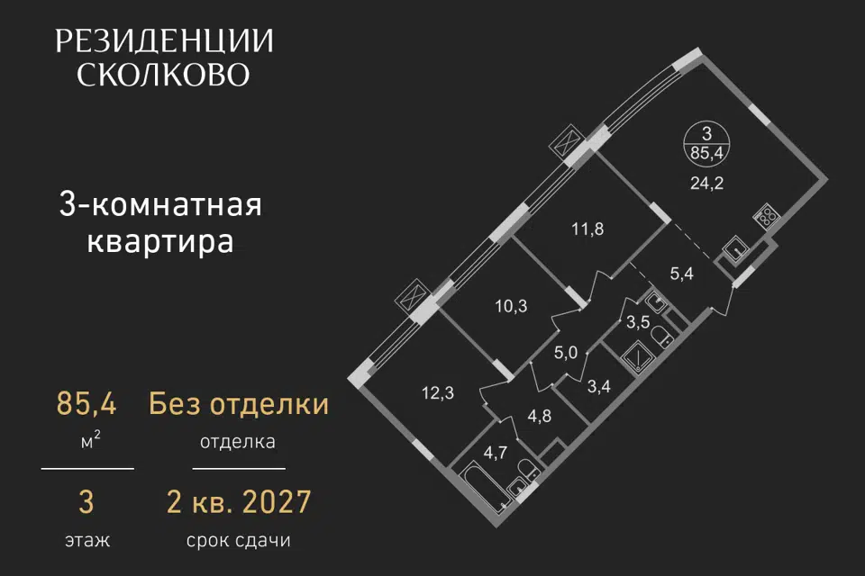 3-комн. кв., 85.4 м², 3/9 этаж