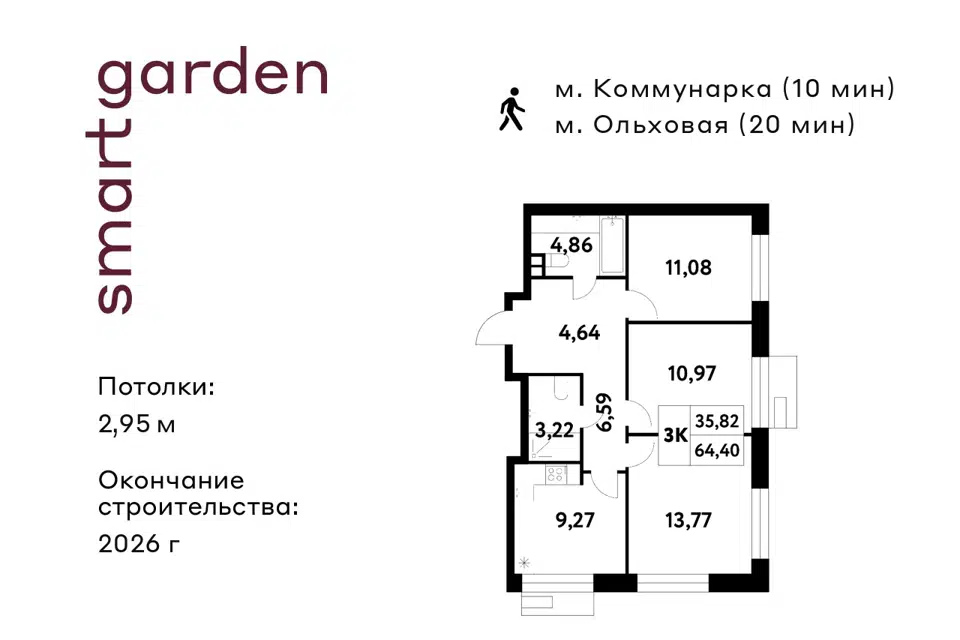 3-комн. кв., 62.94 м², 11/27 этаж