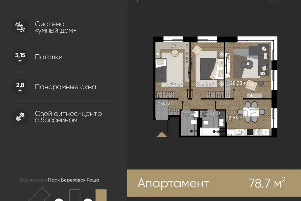 3-комн. кв., 78.7 м², 15/23 этаж