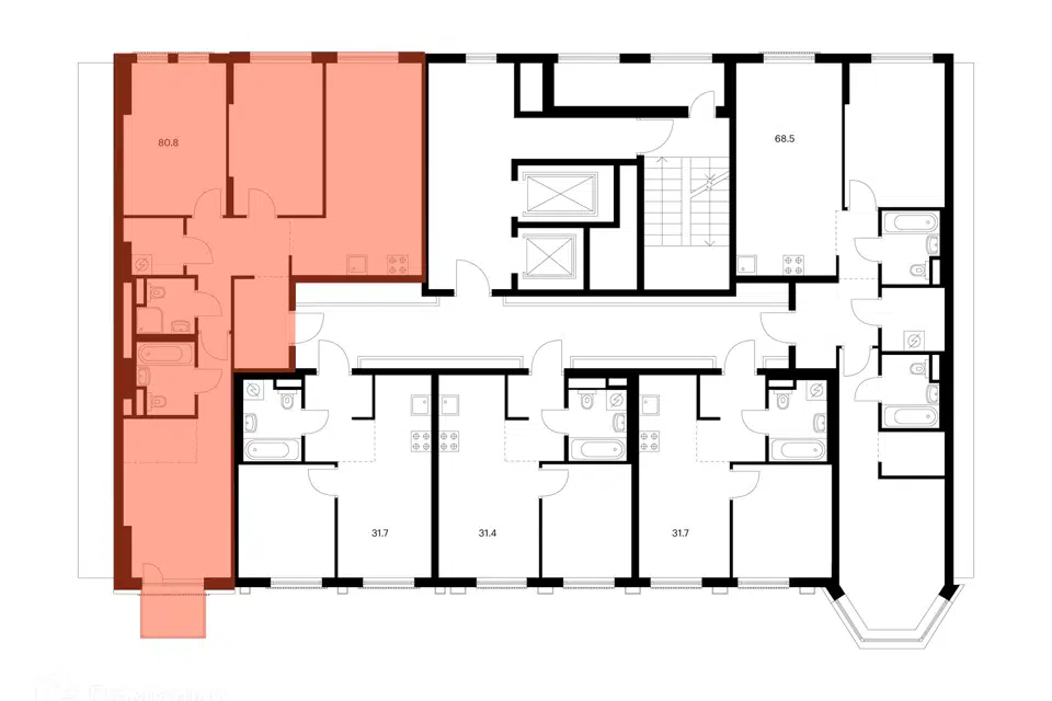 3-комн. кв., 80.8 м², 3/39 этаж