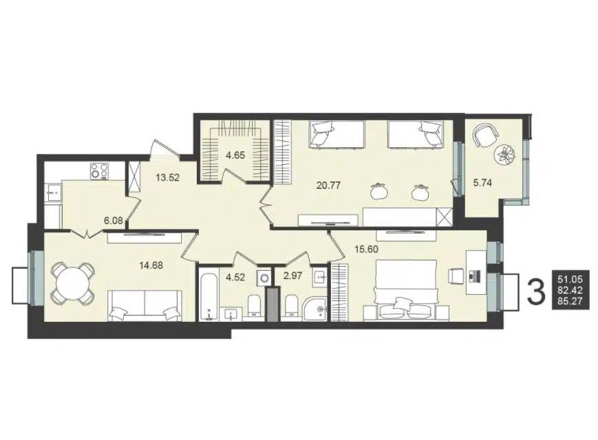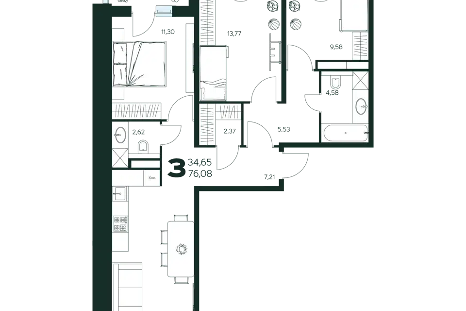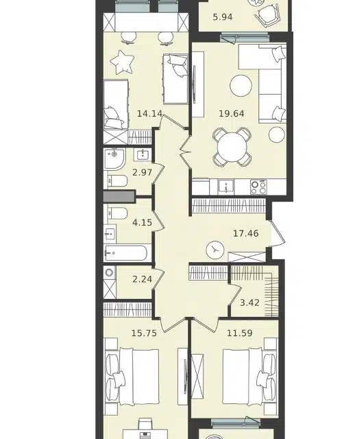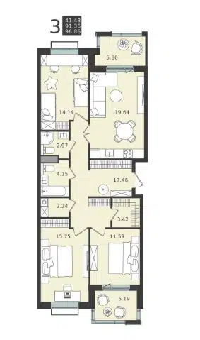 3-комн. кв., 141.9 м², 4/9 этаж