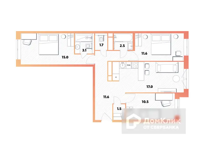 3-комн. кв., от 78.1 м², 25-28 этажи