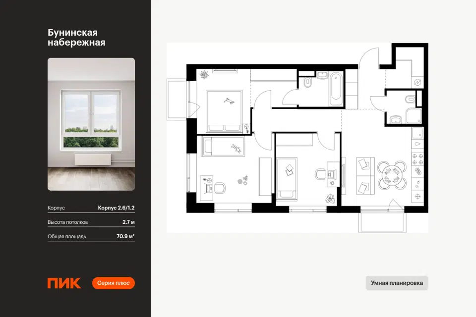 3-комн. кв., от 63.6 м², 2-10 этажи