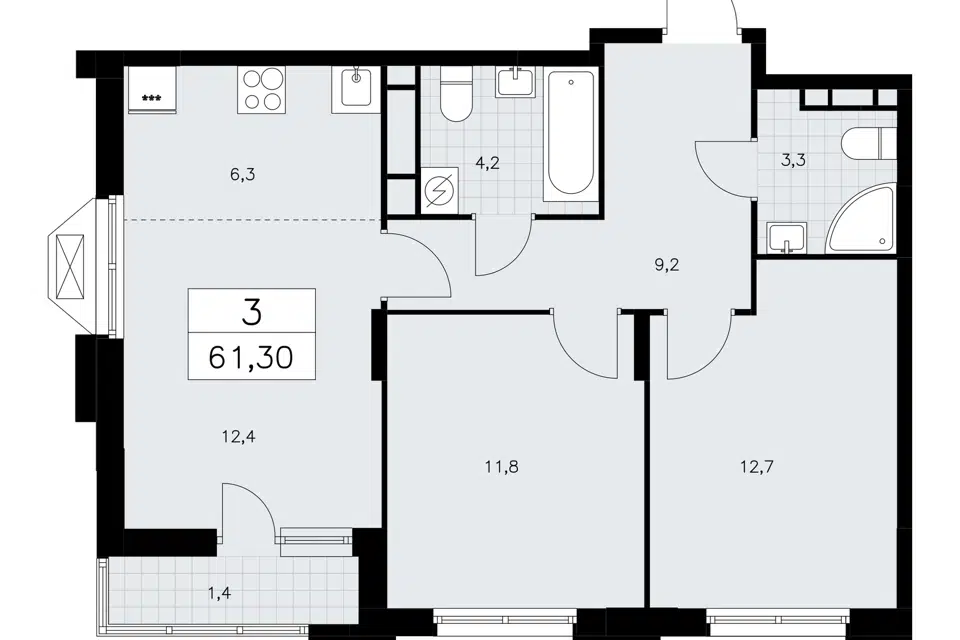 3-комн. кв., от 44.2 м², 4-18 этажи