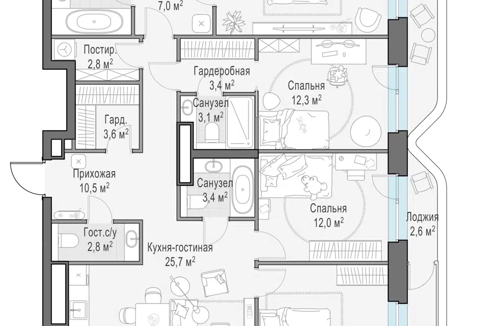 3-комн. кв., от 91.1 м², 11-19 этажи