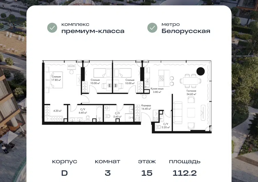 Купить трехкомнатную квартиру в новостройке в Москве у метро Белорусская