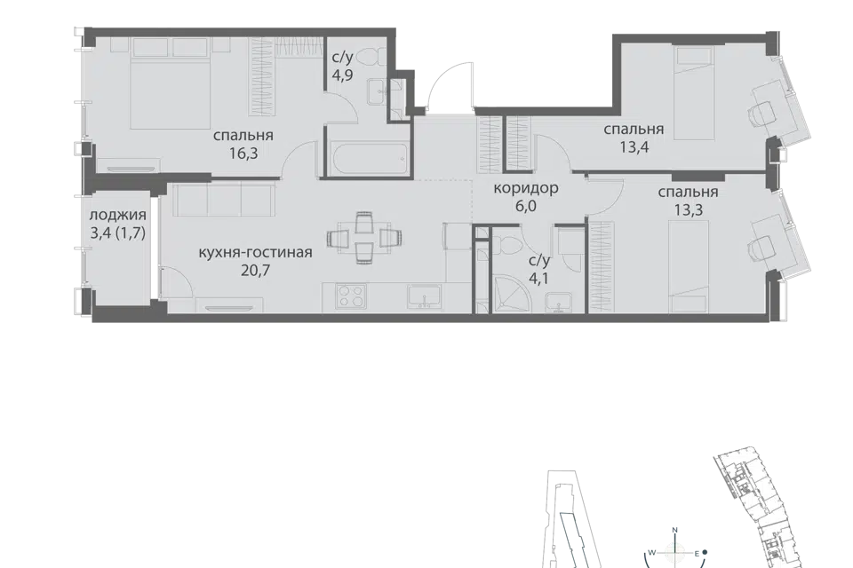 Купить трехкомнатную квартиру в новостройке в Москве у метро Мичуринский проспект