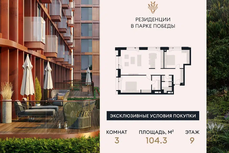 Купить трехкомнатную квартиру в новостройке в Москве у метро Парк Победы