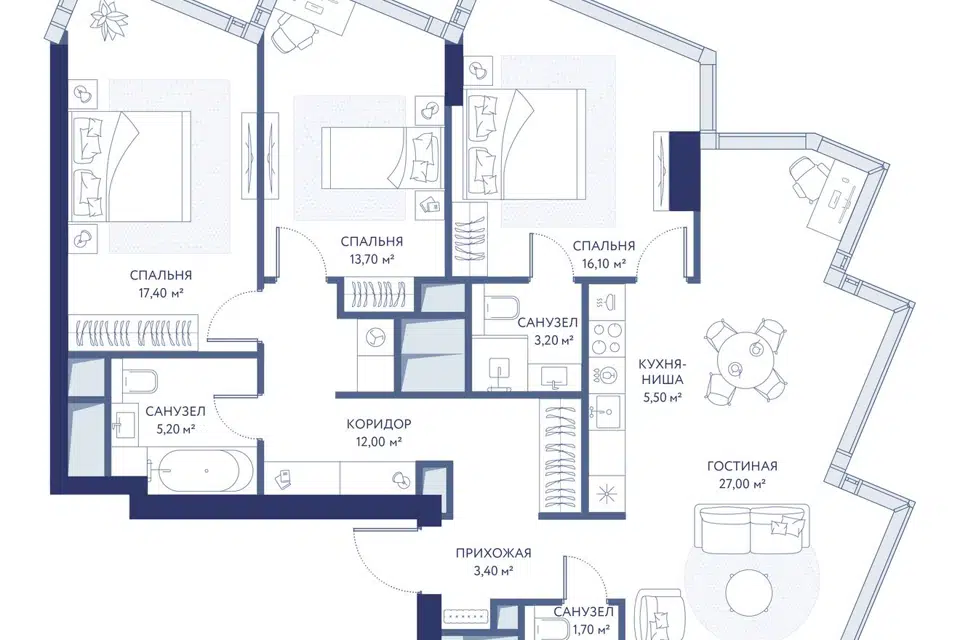 3-комн. кв., от 89.9 м², 16-33 этажи