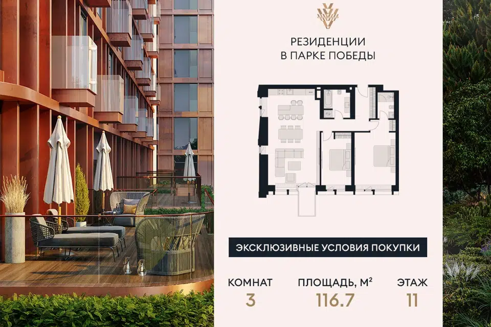 3-комн. кв., от 116.6 м², 8-11 этажи