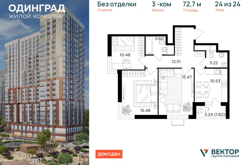 3-комн. кв., от 61.11 м², 21-24 этажи