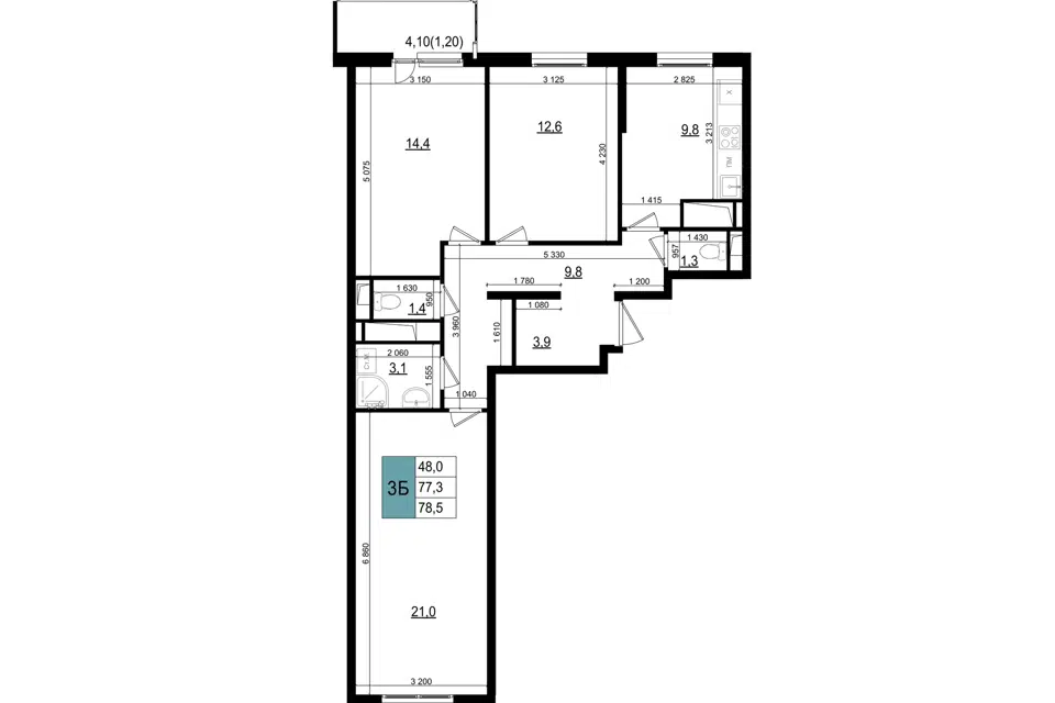 3-комн. кв., от 77.3 м², 2-4 этажи