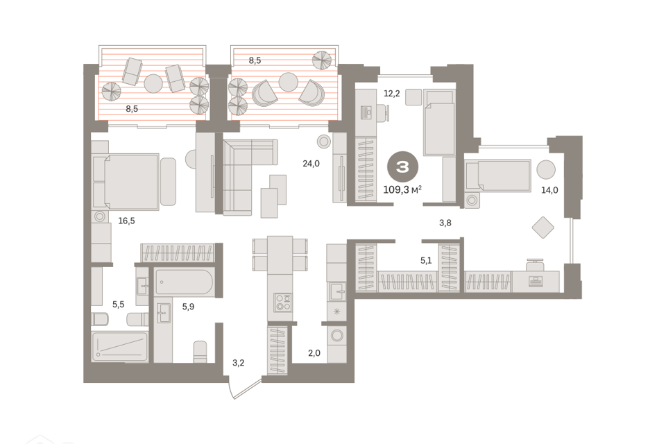 3-комн. кв., 83.2 м², 2/14 этаж