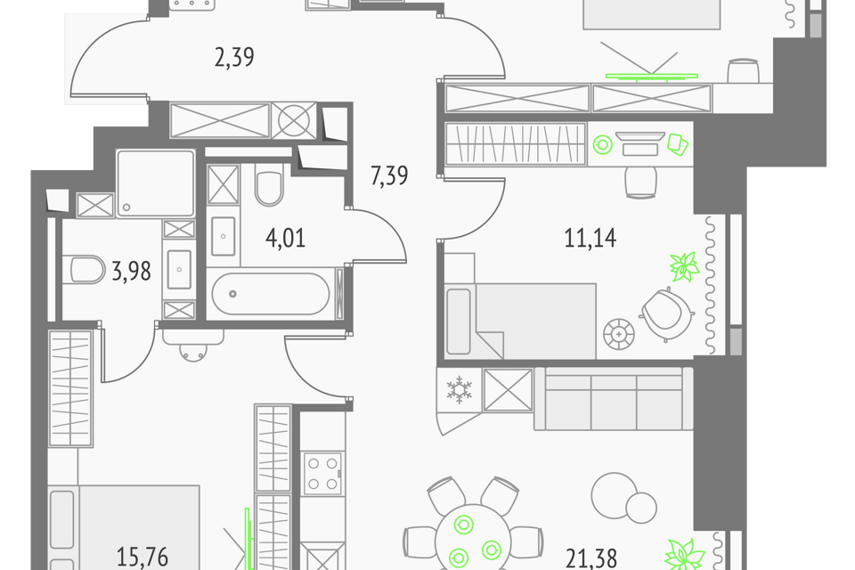 3-комн. кв., от 66 м², 19-26 этажи