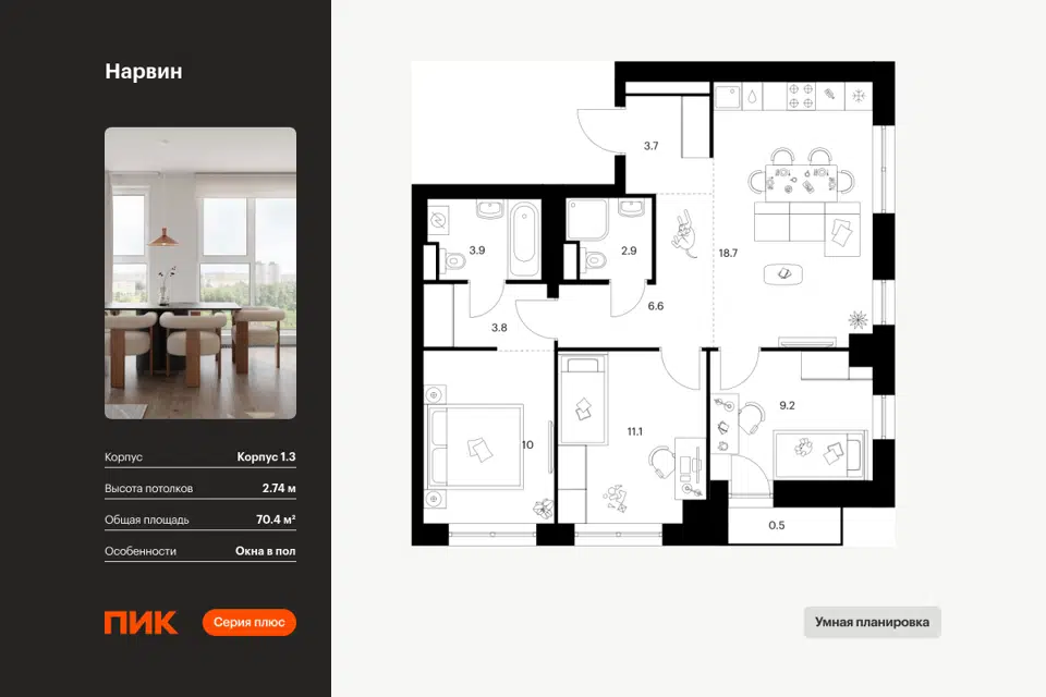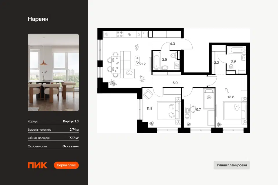 3-комн. кв., от 80.4 м², 11-19 этажи