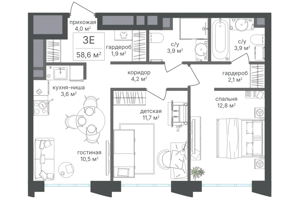 3-комн. кв., от 57 м², 6-20 этажи