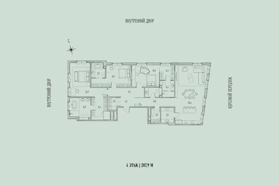 3-комн. кв., 205.4 м², 4/9 этаж