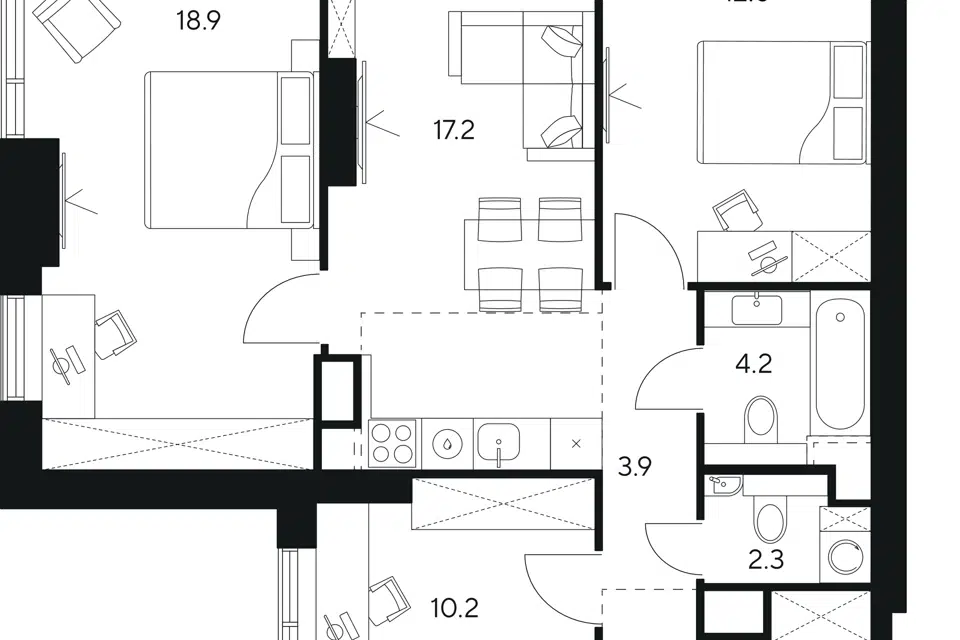 3-комн. кв., от 72.3 м², 2-28 этажи