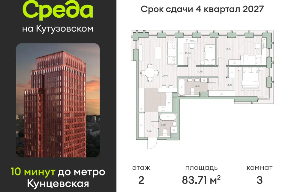 3-комн. кв., от 73.8 м², 6-30 этажи