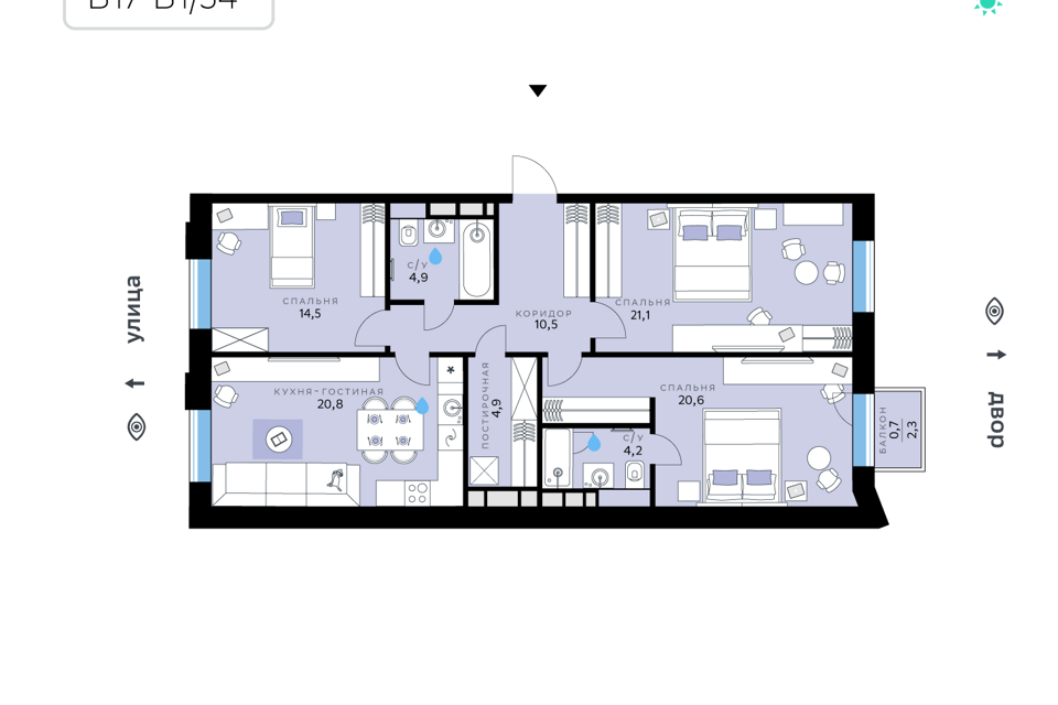 3-комн. кв., от 110.9 м², 2-7 этажи