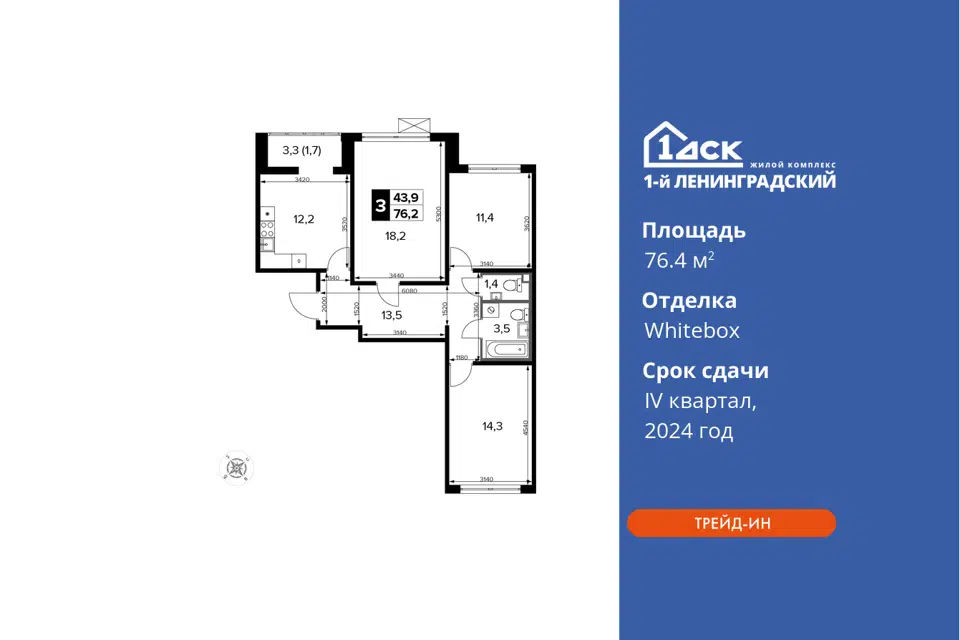 3-комн. кв., от 76.45 м², 3-16 этажи