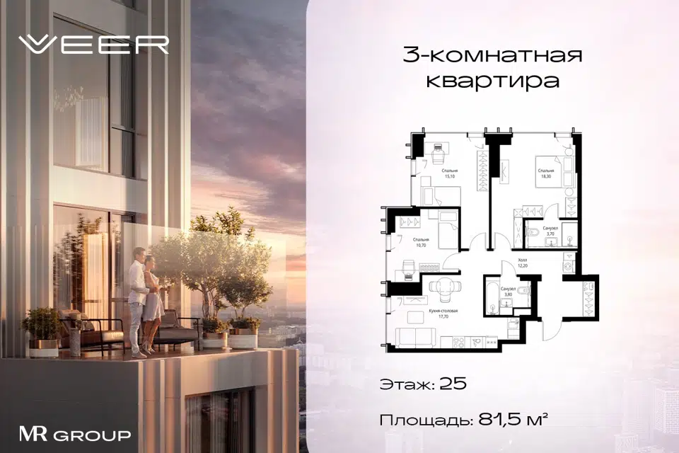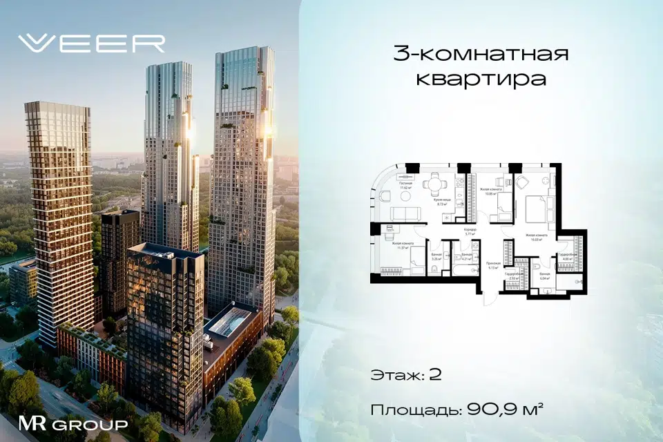 3-комн. кв., от 91.5 м², 25-29 этажи