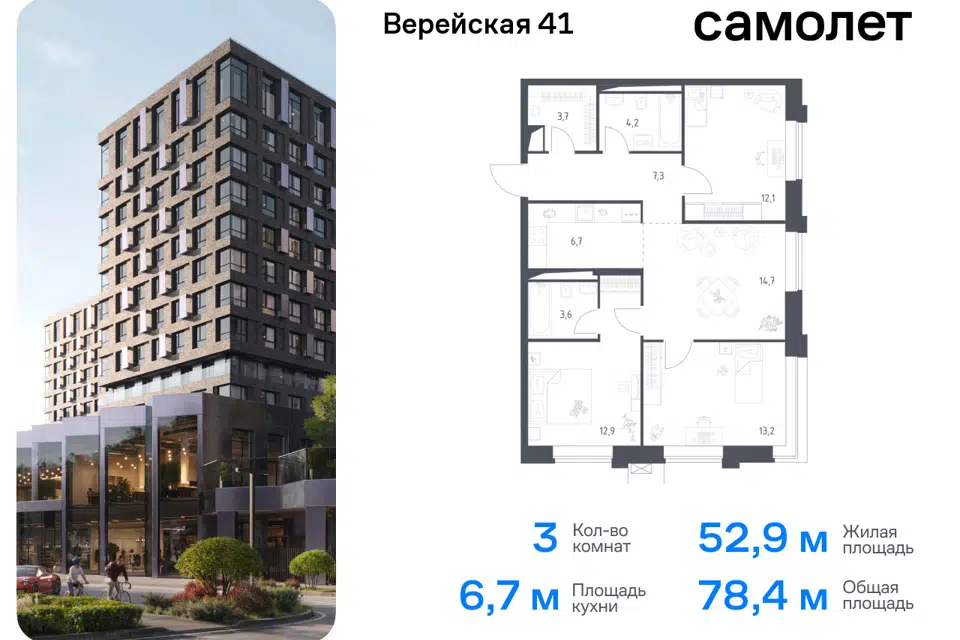 3-комн. кв., от 71.87 м², 2-14 этажи