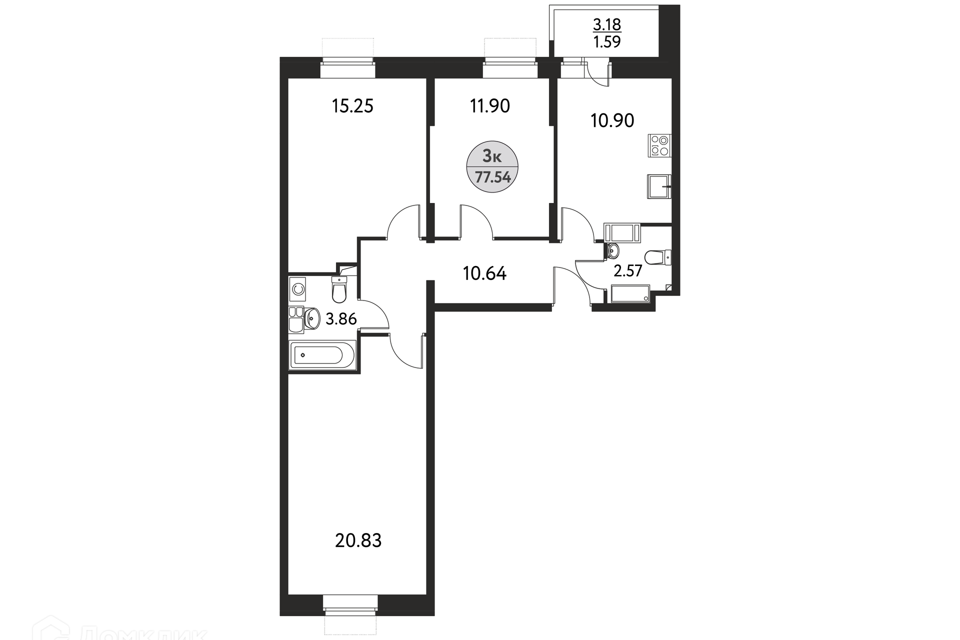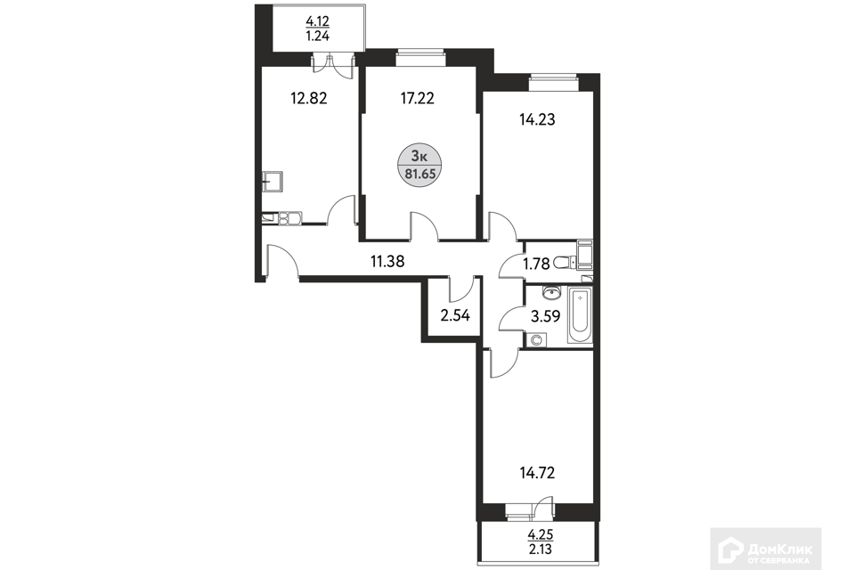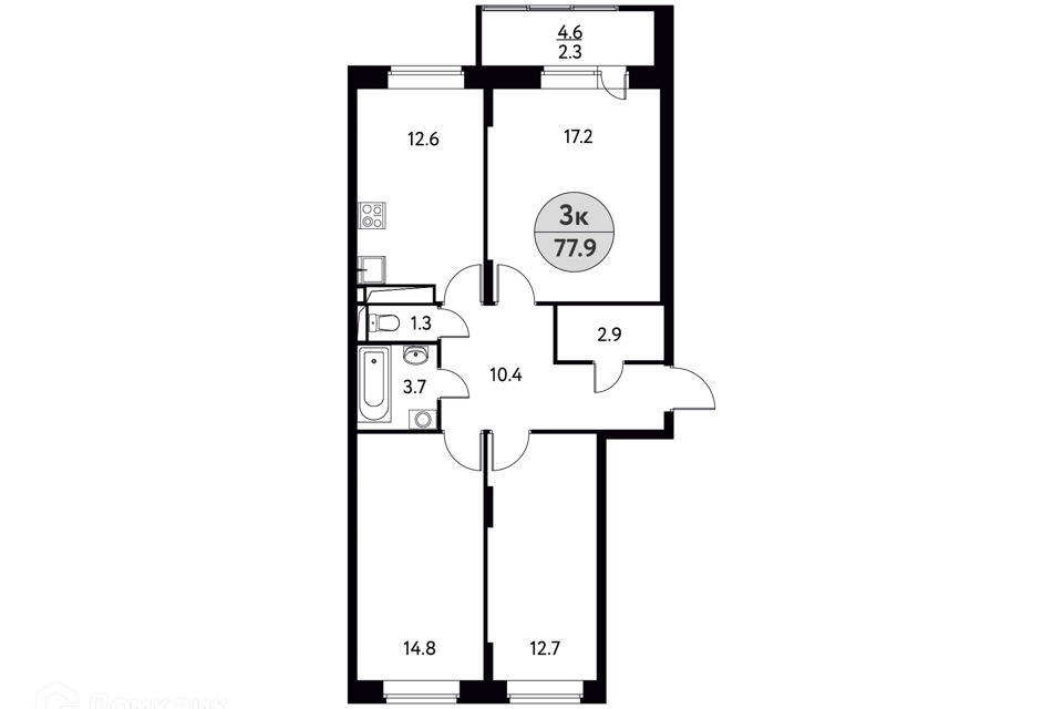 3-комн. кв., 77.4 м², 12/17 этаж