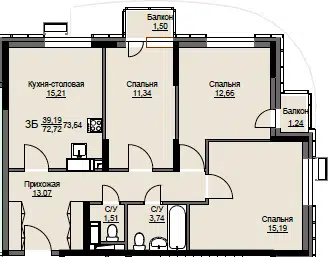 3-комн. кв., от 73.8 м², 2-11 этажи