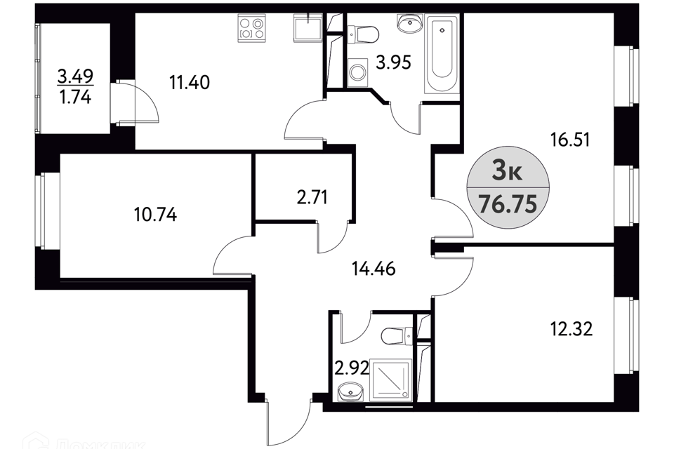 3-комн. кв., от 76.75 м², 4-11 этажи