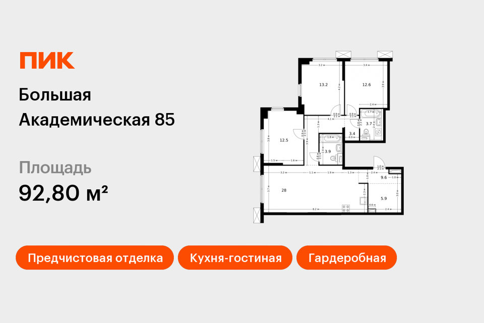 3-комн. кв., от 82.61 м², 13-28 этажи
