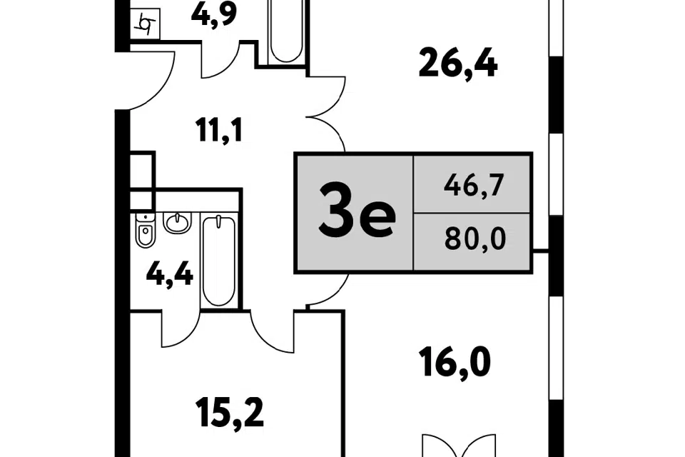 3-комн. кв., от 80.4 м², 11-19 этажи