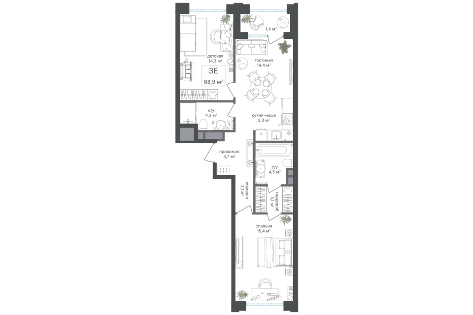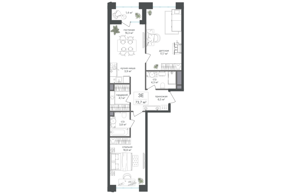 3-комн. кв., от 67.8 м², 6-24 этажи