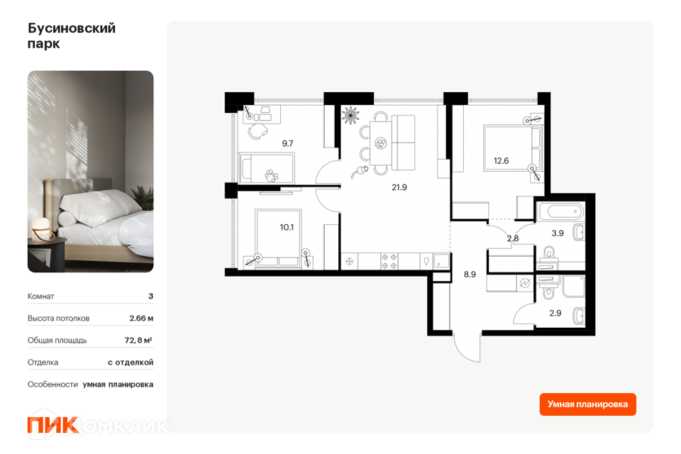3-комн. кв., от 65.8 м², 2-22 этажи