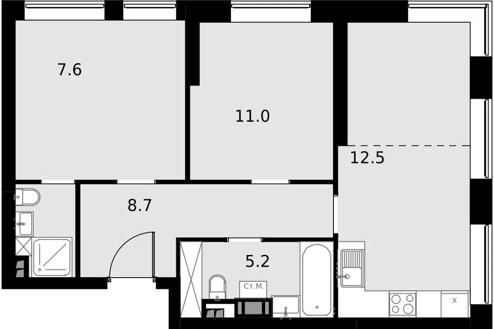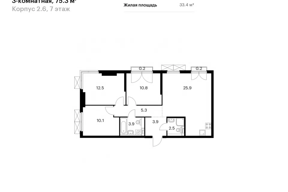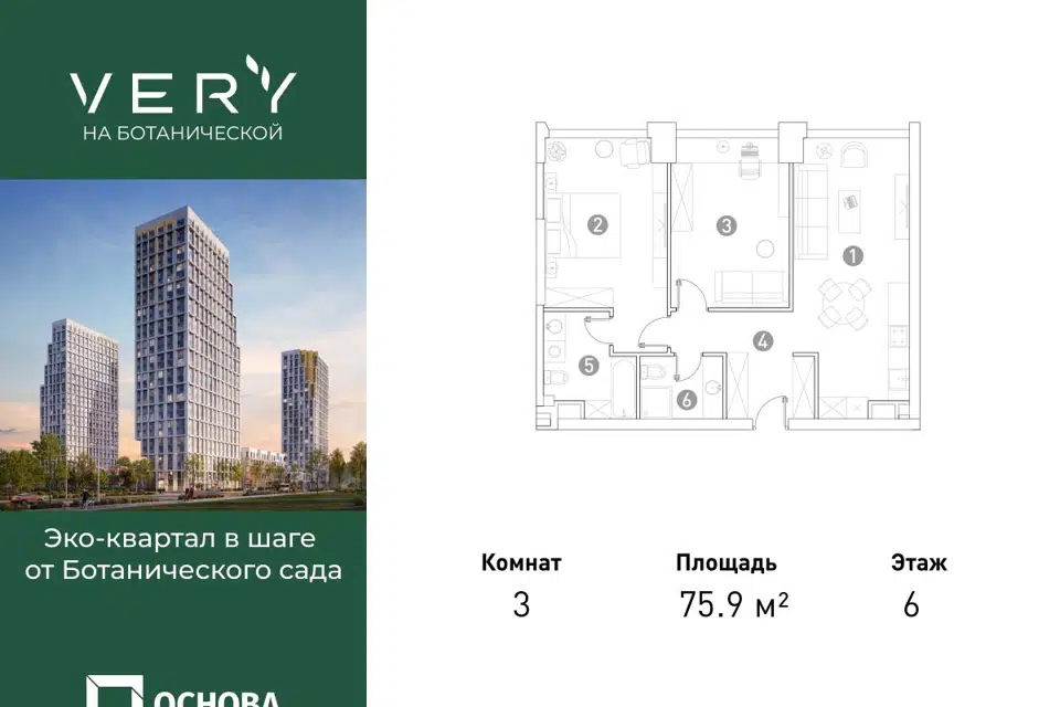 3-комн. кв., от 75.9 м², 2-13 этажи