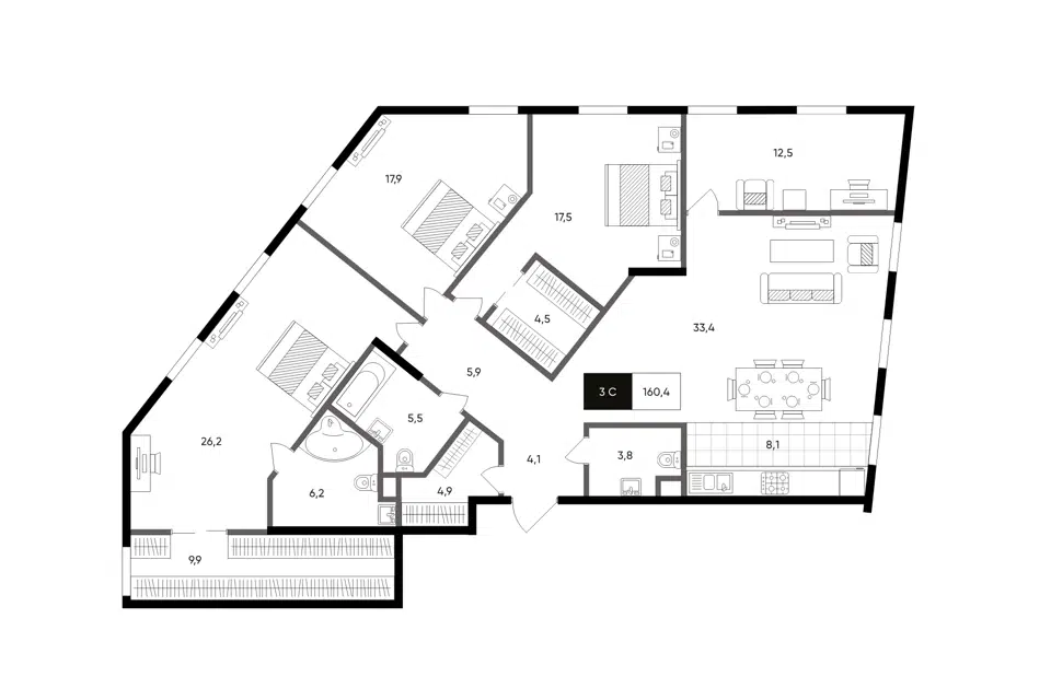 3-комн. кв., от 124.7 м², 2-15 этажи