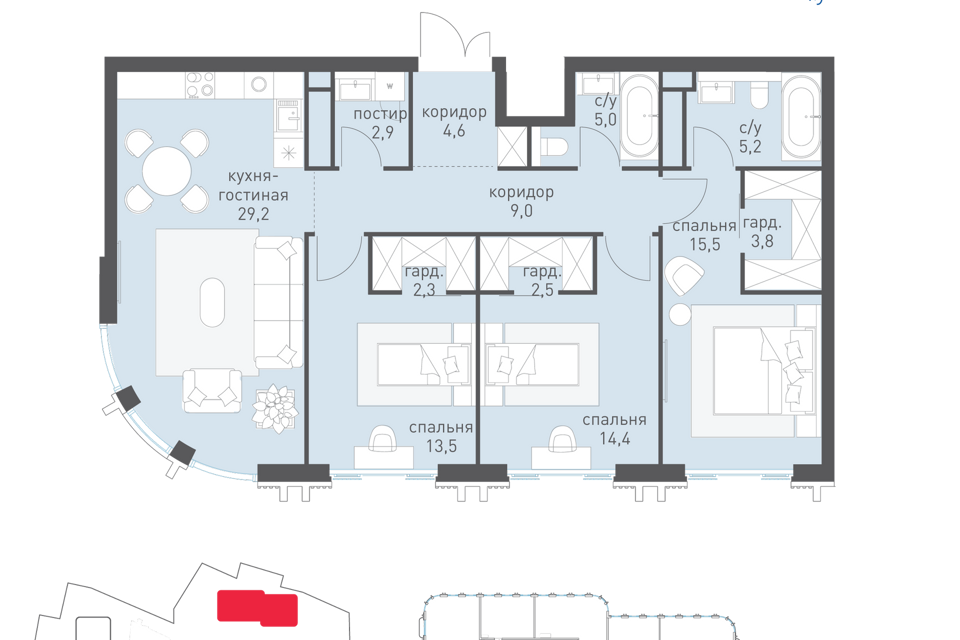 Купить трехкомнатную квартиру в новостройке в Москве - Центральный административный округ