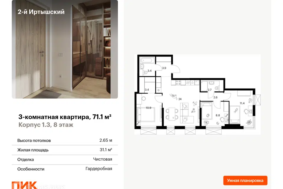 Купить трехкомнатную квартиру в новостройке в Москве - Восточный административный округ