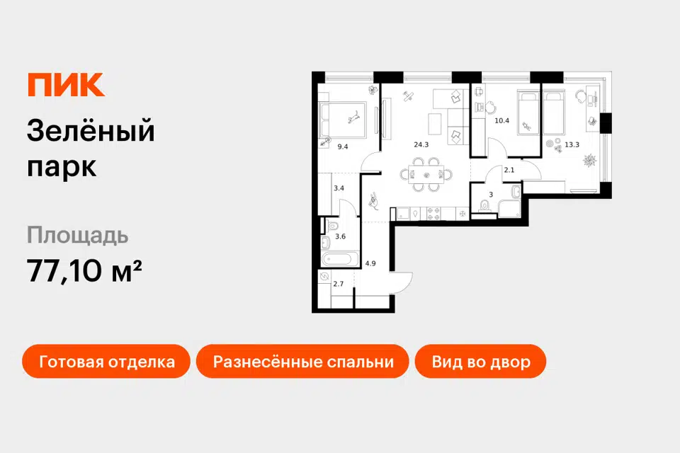 3-комн. кв., 77.1 м², 1/28 этаж