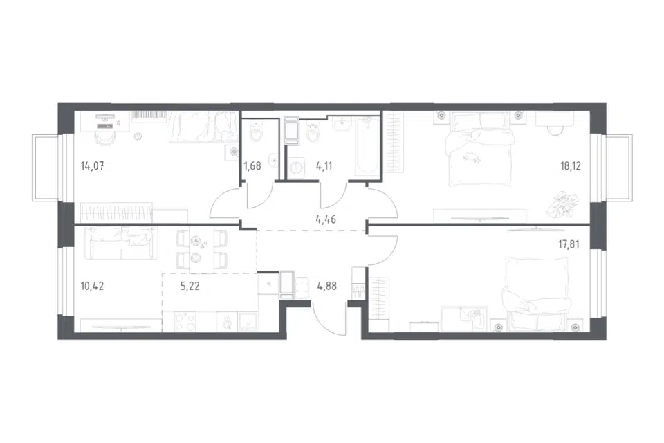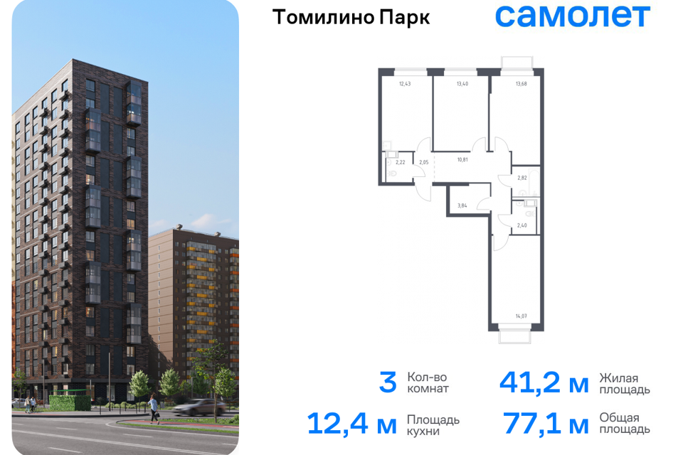 3-комн. кв., от 77.85 м², 2-17 этажи
