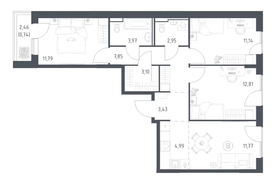 3-комн. кв., от 70.79 м², 7-14 этажи